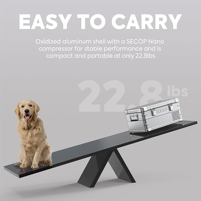 - [SECOP Nano Compressor]-This 12v freezer Cooling range from -4°F to 68°F(-20℃~20℃) to meet all your freezing or refrigeration need. MAX mode for fast cooling and ECO mode for energy saving. With the SECOP smallest compressor, it weighs only 22.8 lbs, but is very consistent in performance.