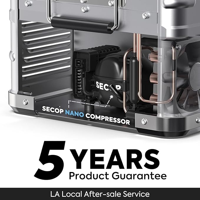 - [Fast Cooling]-With Compressor refrigeration technology, this 12v car refrigerator could achieve 11 min fast cooling from 77℉ to 32℉. No ice needed and soggy food.